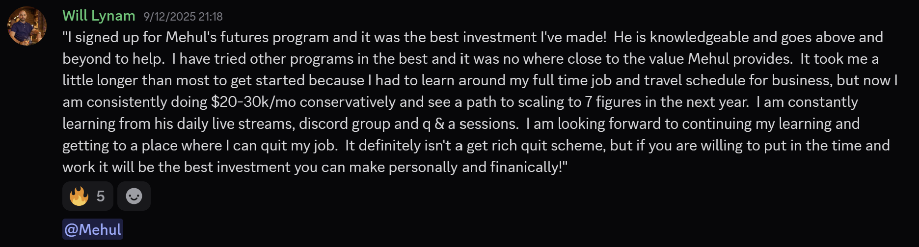 82% win rate across 7,000+ trades in 2025 alone and over $4M in funded capital managed personally.